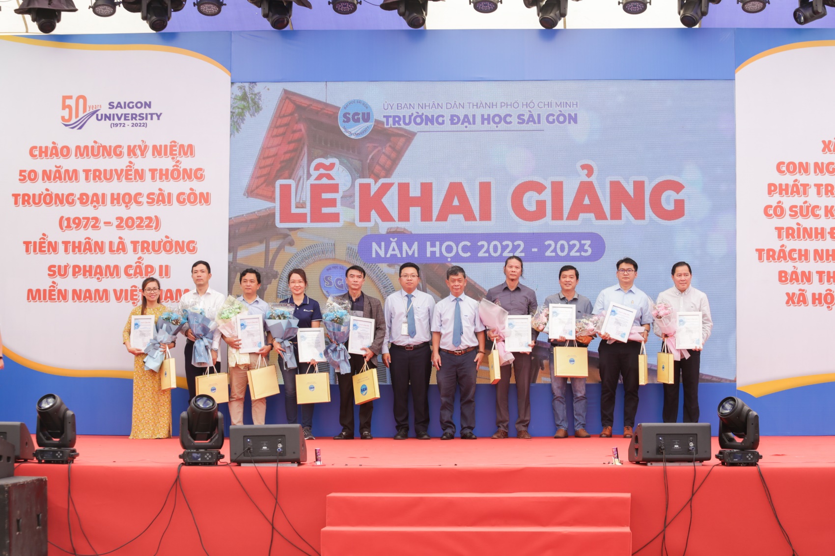 Trong năm học 2021 – 2022, thầy và trò Trường Đại học Sài Gòn vui mừng được Tổ chức Mạng lưới các trường Đại học Đông Nam Á (AUN) gửi thư chính thức công nhận đối với 04 chương trình đào tạo của Trường Đại học Sài Gòn, bao gồm: Sư phạm Toán học, Sư phạm Hóa học, Khoa học Môi trường, Công nghệ thông tin đạt bộ tiêu chuẩn 4.0 theo quy trình cải tiến của AUN-QA. Tại buổi Lễ Khai giảng, Lãnh đạo Nhà trường đã trao giấy chứng nhận và hoa chúc mừng cho đại diện các đơn vị có chương trình đào tạo được công nhận.